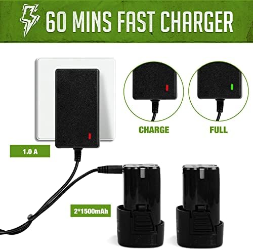 2PCS POWERFUL BATTERY: This Cordless Drill came with 2*1500mAh Li-ion Batteries and 1hour fast charger that can use for 2-3 hours after each charge. The additional battery that makes the cordless electric drill screwdriver always ready to use without restriction. It’s also a good choice for the jobs around the house and garden.