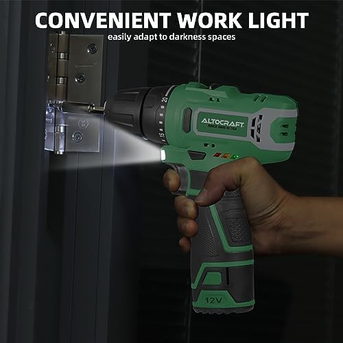 ALTOCRAFT Power Drill Cordless 12V Max,3/8″ Small Electric Screwdriver Driver Tool Kit w/Battery & Charger,Keyless Chuck,Variable-Speed,LED Work Light,Compact and Lightweight for DIY Home Use
