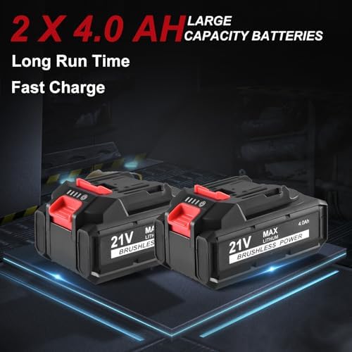 🛠【2×4.0Ah Battery & Fast Charger】Equipped with 4000mAh li-ion battery, AOBEN impact wrench can run continuously for hours ,and the power indicator ensures you to get the battery level at any time. Fully charged in only 2 hours with the matched AOBEN fast charger.