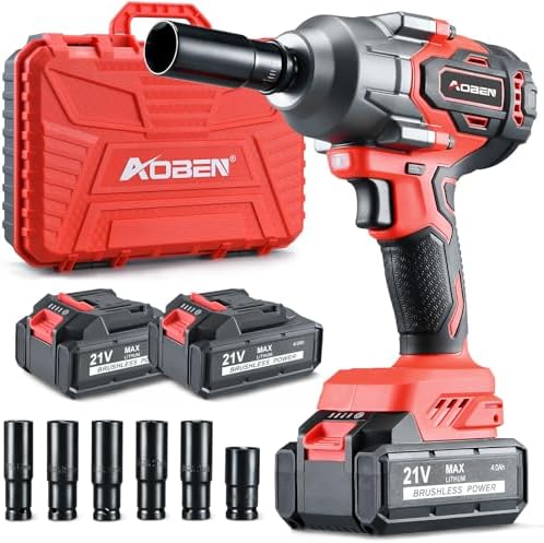 AOBEN Power Impact Wrench 800N.M, 1/2 Inch Cordless Impact Gun, High Torque 590 Ft-lbs Impact Wrench Set with 2 X 4.0Ah Battery, Fast Charge, 6 Sockets, Tool Case