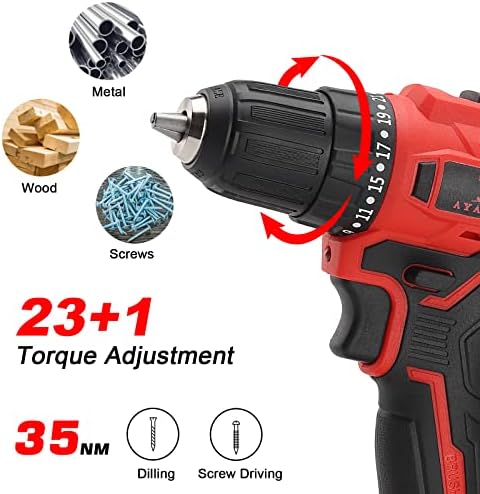 AYA-TECH Power Cordless Drill, Brushless 21V Drill Kit with 2 Batteries, 309 In-lbs Max Torque, 29 Accessories and 2 Variable Speed, Fast Charger, 3/8” Keyless Chuck Drill Set (AT-ED21-2)