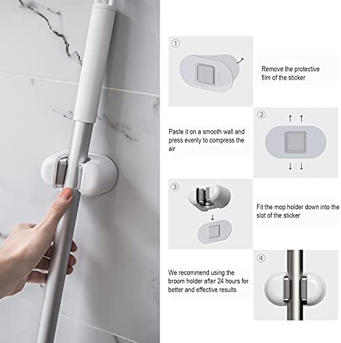 🏠Easy Installation – The installation of our broom organizer is easy as a breeze; it features 4 pcs strong, adhesive stickers that are easy to install; no drilling or nails required for installation; therefore, no damage to your walls