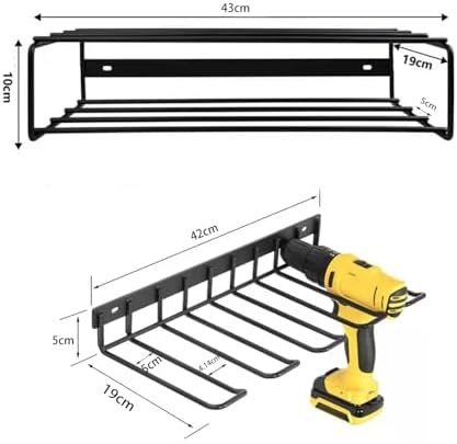 🛠Protective Design: The edges and corners of the Power tool storage rack are polished and rounded so that you won’t warryy about cutting your fingers and your valuable tools getting scratched, Larger size and taller edges allows you to store easily:2 Tier Tool Rack: 16.92″x 7.48″ x 3.9″, 4 Electric Drill Slot Racks: 16.5″x 7.48″ x 2″, Weight: 4.2 LB