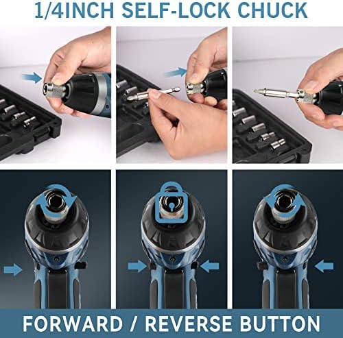 ADJUSTABLE TORQUE: The lightweight electric screwdriver has 6+1 torque settings, 1/4 inch chuck, and 50 in.lbs (5.6N.m) maximum torque, which is very convenient and practical in daily household maintenance.