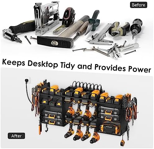 8 drills holder and other tools organizational kits.3-layer and one layer adjustable, pegboard design.8 AC outlets charging station and surge protected.Power tool organizer wall-mounted, built strong.