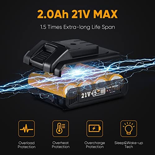 【1.5H Fast Charging & Ergonomic Design】Equipped with 2Ah rechargeable lithium battery, quick charge for 1.5 hour. The compact and lightweight design makes it easier to operate in tight areas, and the rubber-covered handle reduces hand fatigue for greater comfort.
