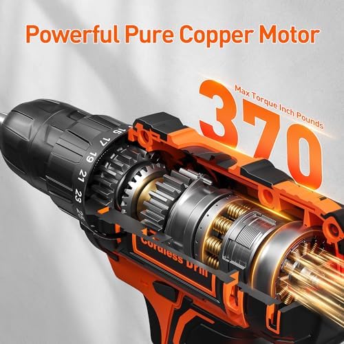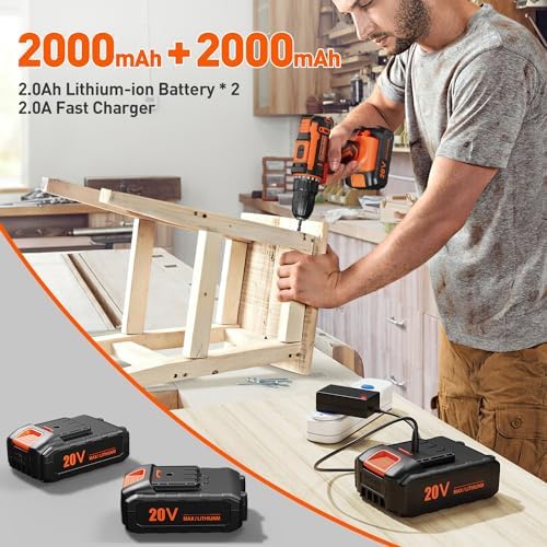 Cordless Drill Set, VIWKO 20V Power Drill Cordless with 2 Batteries and Charger, 3/8 Inch Chuck Electric Drill, 25+1 Torque Setting, 2 Speeds, 370 In-lb Torque, 42Pcs Drill Driver Bits/Screws for DIY