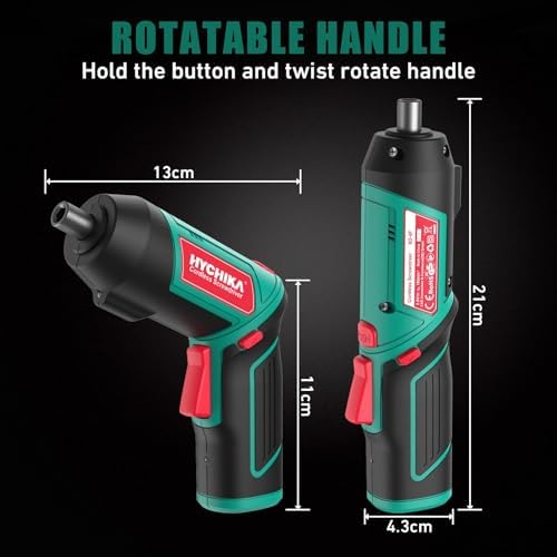 Cordless Screwdriver 6 N.m, HYCHIKA 4V 2000mAh Electric Screwdriver Gun, Adjustable 2 Position Handles, Front LED, DC Charging, 20pcs Accessories
