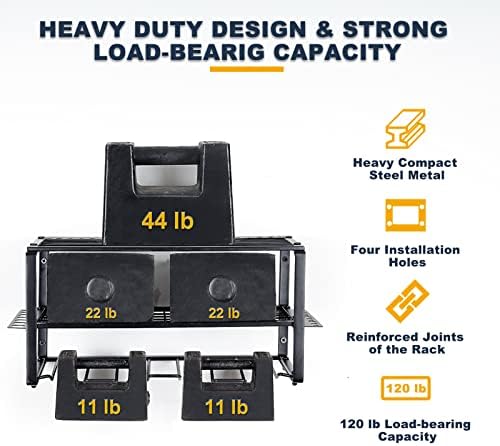 🧰【Heavy Duty Design & Strong Load Capacity】Craftforce power tool organizer is made of heavy and compact steel metal with 4 mounted holes, the joints of the rack are reinforced and the screw nuts are upgraded to provide strong compression resistance. With these heavy duty and reinforced design, Craftforce tool organizer has a strong load-bearing capacity of 120 lbs.