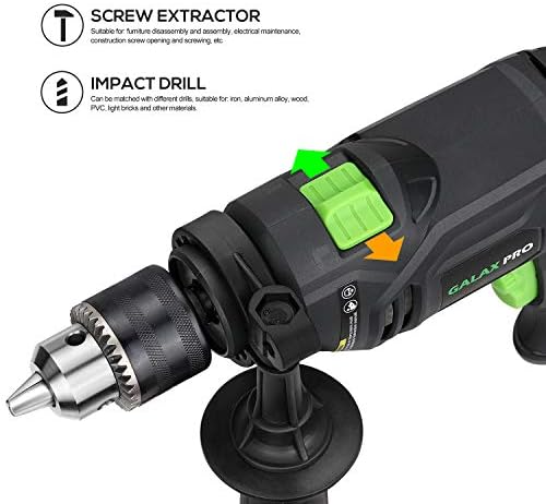 Hammer and drill functions: Equipped with a green dual-mode selector on the top, you can easily convert between hammer and drill function by one button depending on your tasks