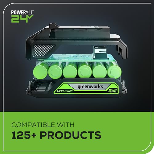 【Highly Efficient Brushless Motor & 1.5Ah Batteries】 delivers more power at 2X More Torque, cooler operation at high speeds, enhanced battery runtime and longer service life. 1.5Ah batteries can ensure that your Greenworks tool is always ready for use when you are