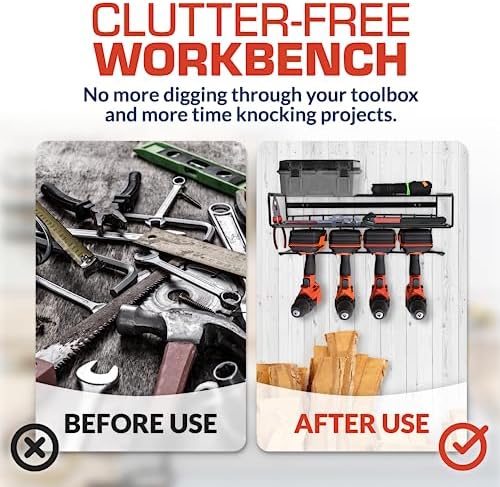 [Say Goodbye to Clutter] … and watch your productivity go through the roof! This 3-layer tool wall organizer organizes your drills, battery packs, and small toolboxes. This means a clutter-free workbench, easier tool access, and more space to nail every project.