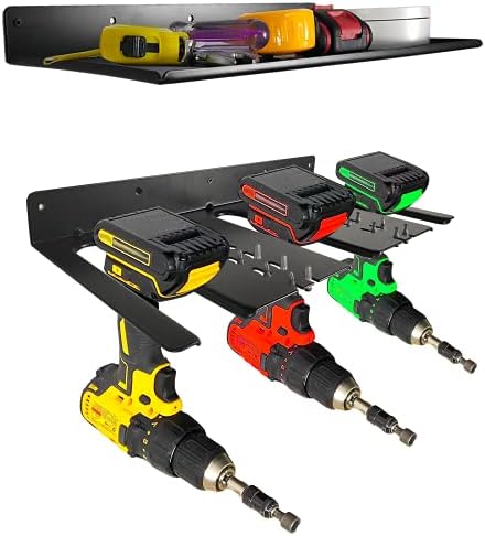 Electric Drill Storage Rack with Storage Shelf, Wall Mounted electric drill rack, electric drill organizer, organize all your electric drills on this wall-mounted heavy metal storage rack!