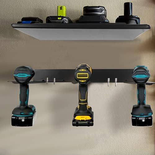 Homydom Garage Organization and Drill Storage Electric Drill Storage Rack Power Tool Holder with Storage Shelf Wall Mounted Utility Battery Storage Organizer Garage Workshop Shed Hanging