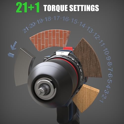 ✅【 Versatile Electric Drill Cordless with Adjustable Speed and Torque 】 Experience tailored drilling with our drill kit, featuring dual-speed settings of 0-450RPM for precision and 0-1500RPM for power, along with 21+1 torque options for various surface hardness. The pressure-sensitive trigger enables smooth speed control—the more you press, the faster it goes. Adapt effortlessly to any material, ensuring precise and flawless results in every task!