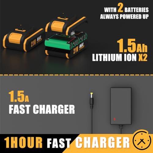 ✅ 【Do You Get The Charger and Extra Battery?】Batteries and charger matter! The beating heart of any drill/driver is its battery. It determines the tool’s power and run-time. The Inspiritech BPD9221 cordless power drill set comes with 2pc 21 volt 1500mAh Lithium-Ion batteries and 1pc one-hour fast charger, which keep your drill constantly running and help you finish your job smoothly with long-lasting efficiency.