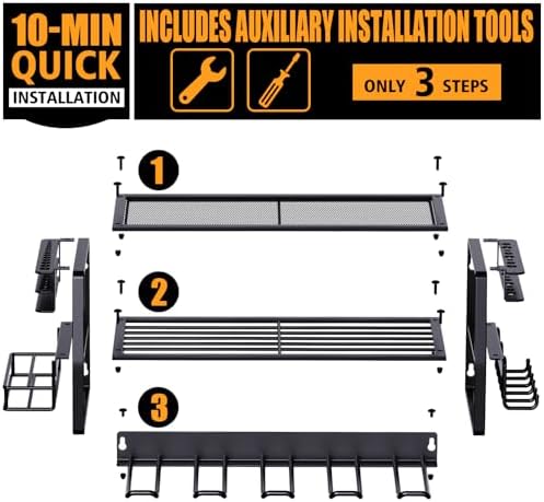 【Ten-Minute Quick Installation】We provide a professional installation manual and supplementary tools for your convenience. Simply connect the four storage brackets to the shelves with screws, and within ten minutes, you’ll have an electric tool organizer. Your tools will be neatly displayed, eliminating the need to waste time searching for them.
