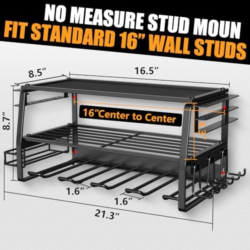 【Upgraded Vision Tool Rack 】Elevate your storage solutions with Kayfia upgraded wall mounted tool organizer. Features four small tool storage shelves on both sides, specifically designed for organizing pliers, screwdrivers, drill bits, or hammers. With just one electric tool storage rack, you can effortlessly organize most of your tools, resulting in a tidy workspace.