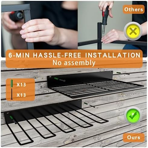 6 Minutes Quick Installation, No Assembly: No complicated assembly procedure, you just need to fix the power tool rack to the wall/pegboard/wood with screws and anchors. No need to spend a lot of time to distinguish complicated drawings and bits and pieces like other products, you have a neat power tool organizer and a clean tool room in minutes.