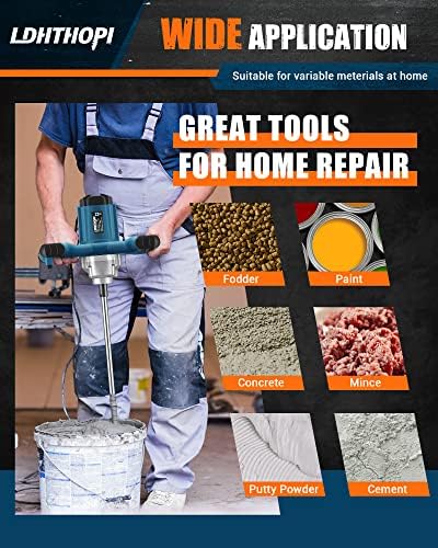 LDHTHOPI Cement Mixer, 2300W Electric Paint Mixer, Portable Mortar Mixer with 6 Adjustable Speed, 110V Handheld Mud Mixer for Mixing Mud, Cement, Mortar, Paint, Fodder