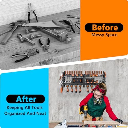 【Installation and after-sales】 The drill storage rack uses a detachable design, only need to use screws to connect the shelf, and then hang on the wall. We provide you with professional installation instructions and professional installation tools, so that you can easily get a perfect product in a few minutes. We are committed to providing you with quality products and services, if you have any questions, please contact us.