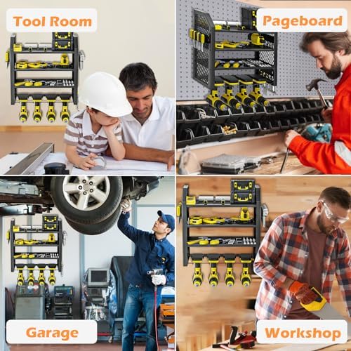 Nidouillet Power Tool Organizer, 4 Layers Drill Holder Wall Mount, Heavy Duty Power Tool Storage Rack, Garage Tool Organizer and Storage for Drill & Screwdriver