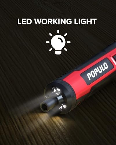 POPULO 4V Electric Screwdriver Kit,6 Torque Settings, Power Screwdriver Cordless Rechargeable with LED Work Light, 32 pieces Screwdriver Bits, 8 Sockets, Flex Hex Shaft, Bit Holders and Storage Box