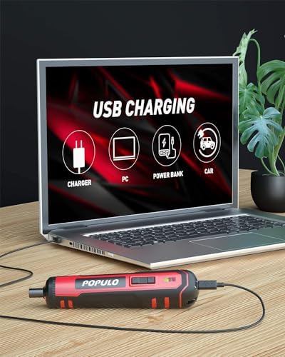 【CONVENIENT CHARGE & WIRELESS DESIGN】-It can be charged anywhere with the type-c plot, like a laptop, power bank, car charger, etc.But do not turn on the tool while it is charging.Not only does this power screwdriver include a charging cable, we also have a charger.