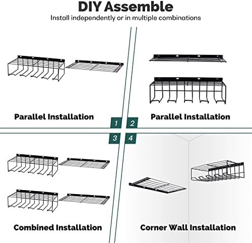 Our power tools holder is made of solid gauge steel wire with black coated, which is durable, sturdy for long service time. This metal storage rack is designed for holding electric tools. 2-layer tool storage racks and 4 power drill slots can be used to store tool boxes, extra batteries, chargers, drill bits, as well as various screwdrivers and other tool accessories, which make your tools easy to get. This wall-mounted garage tool organizer converts wasted wall space or ample extra place into a compact and effective storage area. It’s a perfect storage rack solution for power tools in garage or workshop.