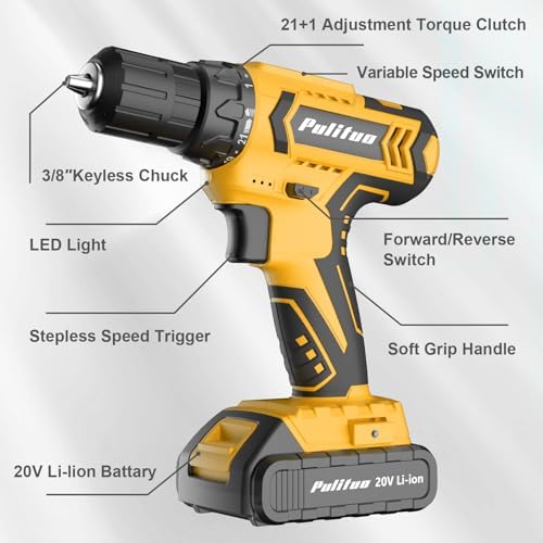 【POWERFUL TORQUE AND MULTIPLE ADJUSTMENTS】: PULITUO cordless drill features a 20V battery and delivers a powerful torque of up to 30N.m. It offers dual-speed adjustment, allowing you to choose between high-speed and low-speed modes based on your specific work requirements. Additionally, the 21+1 torque settings enable precise adjustments for different tasks.