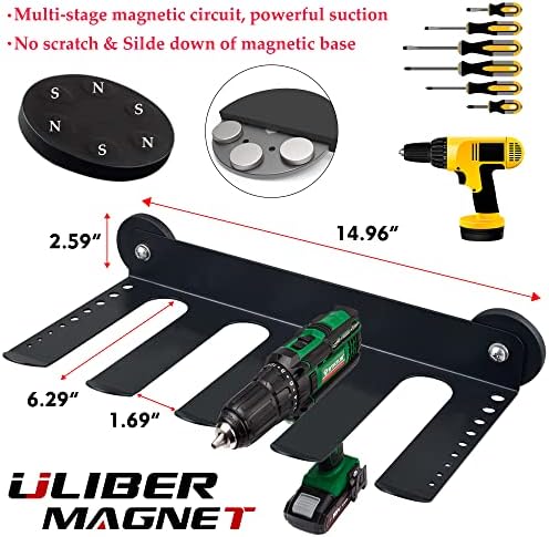 ULIBERMAGNET Magnetic Power Tool Organizer, Heavy Duty Cordless Drill Holder,Utility Storage Rack Shelf with Screwdriver Holder,Removable Tool Rack Suitable for Garage, Workshop and Warehouse