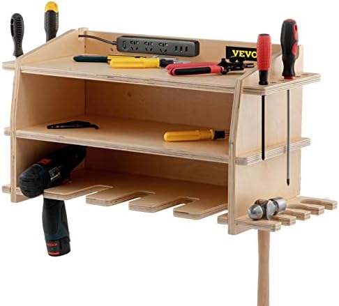 Detailed Workmanship: The burlywood power tool organizer is made of plywood material with a beautiful paint coat finish, making it waterproof. The surface of the boards is polished smooth and without burr, thus will not cause scratches to you while working.