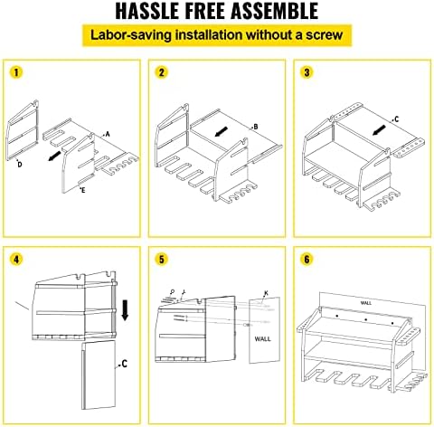 Assemble in a Breeze: The drill storage comes with pre-set holes, components, and parts, which is labor-saving and time-saving. With help from the instruction manual, the power tool storage organizer shelf can be assembled without screws in mere minutes, so you have more time to prepare for your next big project.