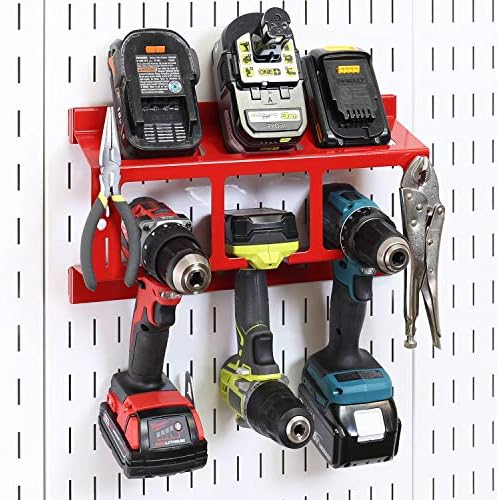 Wall Control Drill Holder Power Tool Storage Rack – Compact Impact Drill Battery Power Tool Pegboard Organizer Pegboard (Red)