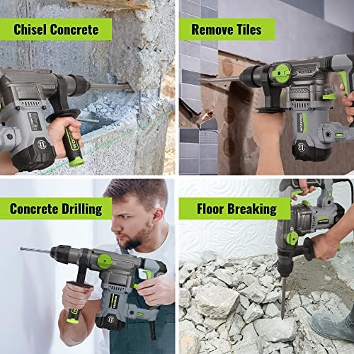 【Better Tools Make It Professional】 Heavy duty material & structure pass 1m drop test with no functional issue. Professional grade. This rotary hammer provides a powerful 12.5 AMP motor. 5.5 joules impact energy for fast drilling and chipping speed