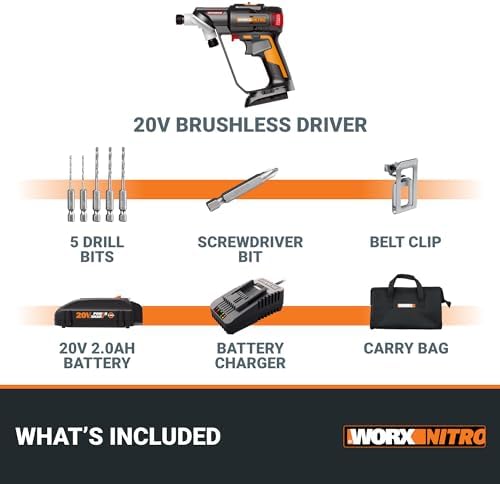 Worx Nitro 20V SwitchDriver 2.0, 2-in-1 Brushless Cordless Drill Driver, Drill Set Rotatable Dual 1/4″ Chucks, Compact Cordless Drill with Digital Torque Setting WX177L – (Battery & Charger Included)