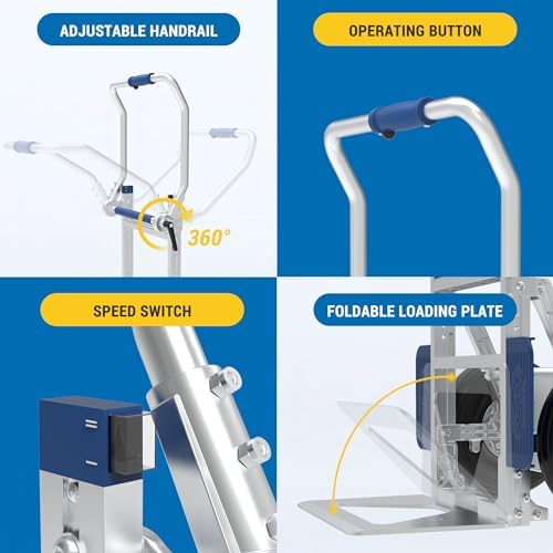 XSTO CT150PA Crawler Electric Stair Climber, 400W Motor Hand Trolley 330Lb Load Capacity Stair Climbing Cart 48V 10Ah Lithium-ion Battery Powered Stair Climbing Hand Truck with Caterpillar Track Drive