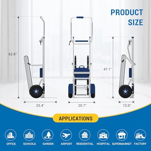 330Lbs Load Capacity – XSTO stair climbing truck with capacity of up to 330lbs, It can carry printers, home appliances, furniture and other goods easily by single person. It can help you save huge labor costs. It comes with a 145.6inch seat belt can help you fix the goods to prevent falling down.