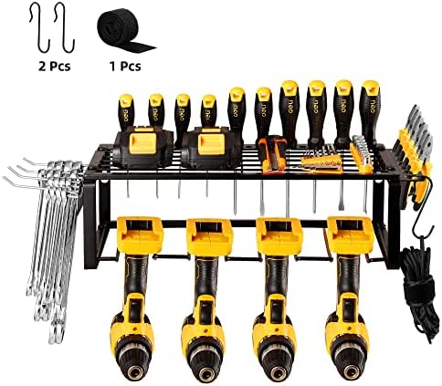 yoopin Power Tool Organizer-with 4 Drill Holder,2 Layers Heavy Duty Storage Rack and Drill holder Wall Mount Suitable for Toolroom、Sheds、Garage(Tool Shelf For Mechanic, Electrician & Hobbyist)
